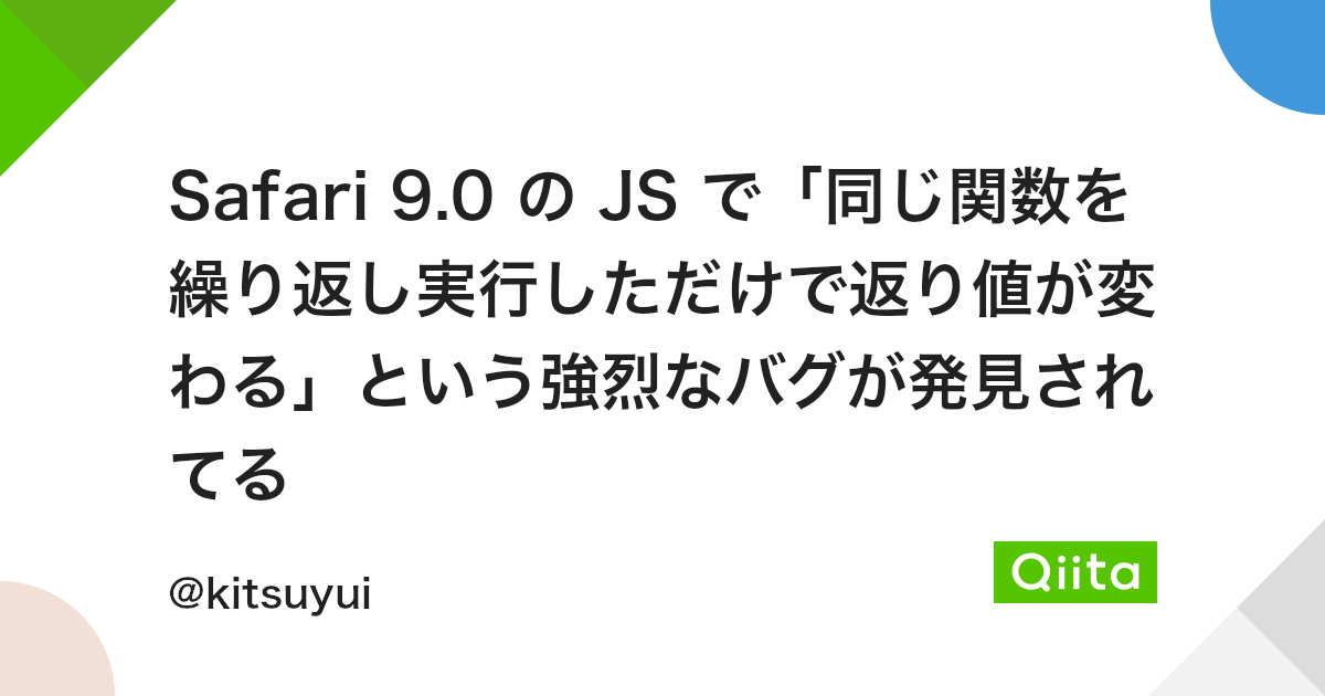 - Safari 9.0 の JS で「同じ関数を繰り返し実行しただけで返り値が変わる」バグ