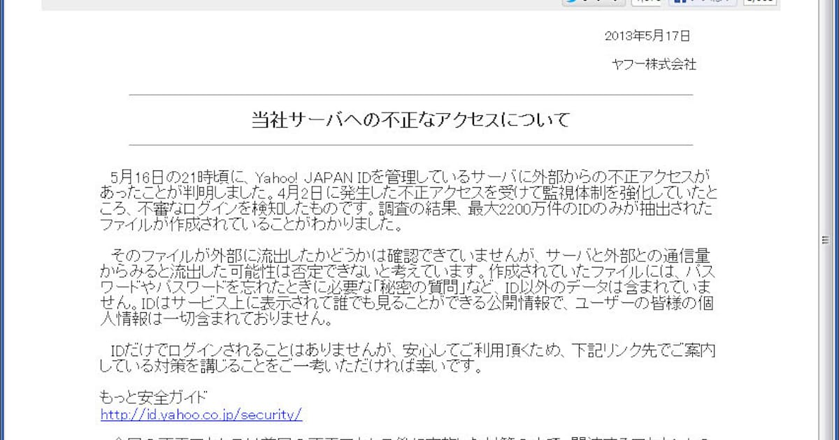 - ヤフー、9万人超のIDとアドレス誤送信 (日本経済新聞)