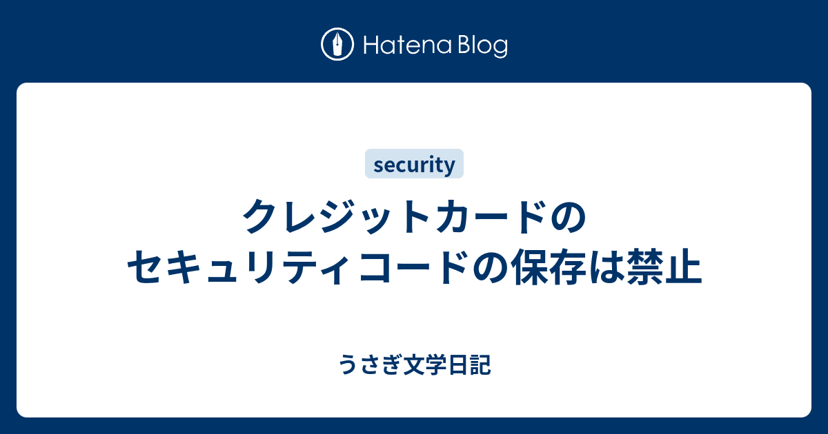 - クレジットカードのセキュリティコードの保存は禁止 (うさぎ文学日記)