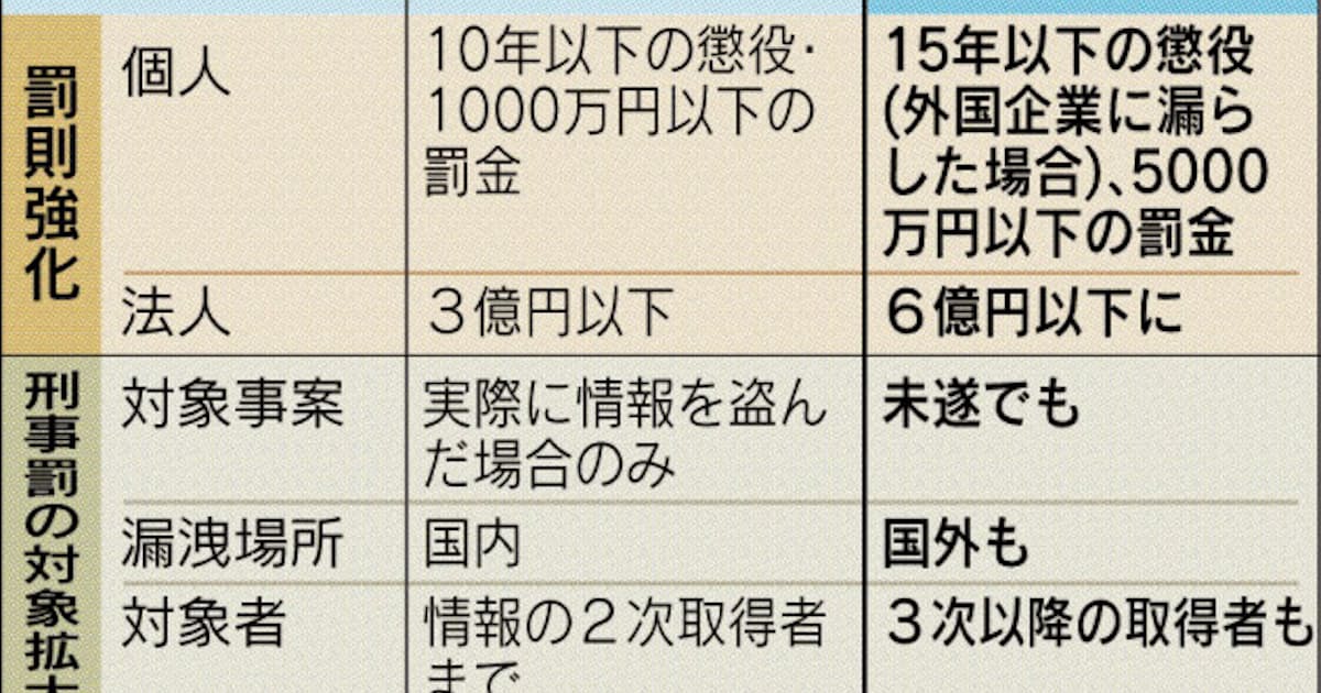 - 企業秘密漏洩 未遂も刑罰 海外流出防止に重点 (日本経済新聞)