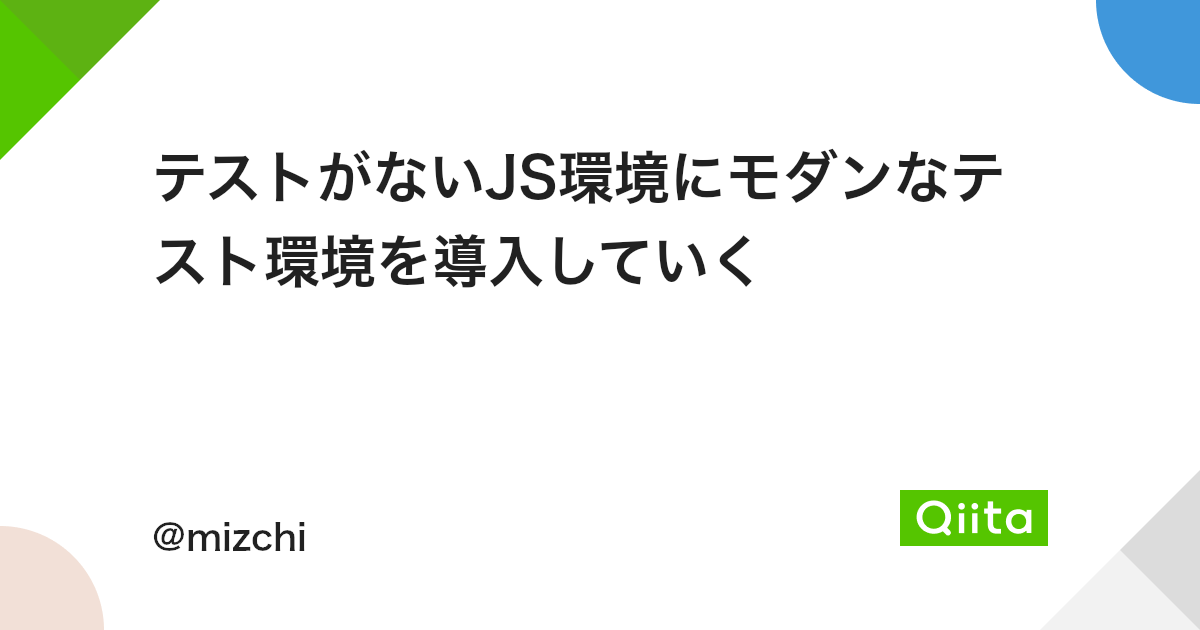 - JavaScript - テストがないJS環境にモダンなテスト環境を導入していく (Qiita)