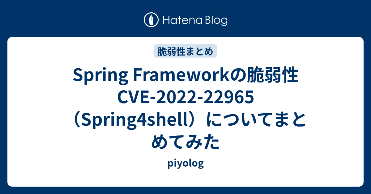 - Spring Frameworkの脆弱性 CVE-2022-22965(Spring4shell)についてまとめてみた - piyolog