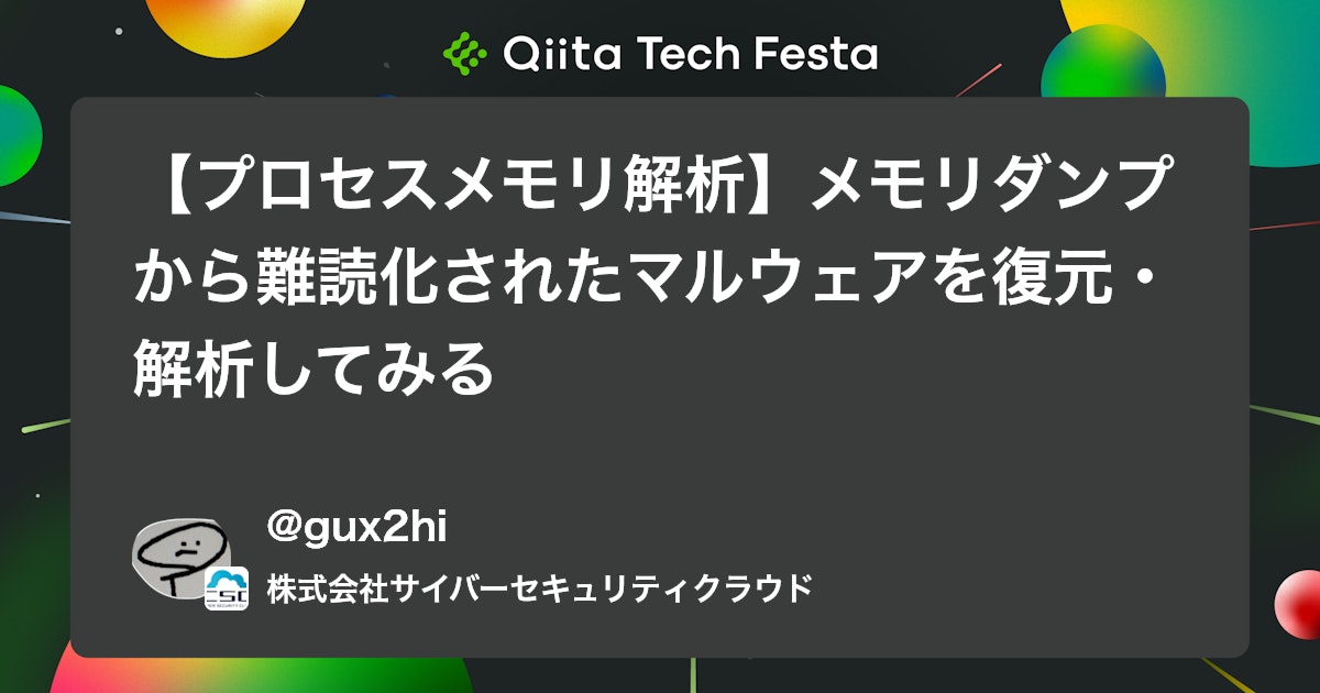 - 【プロセスメモリ解析】メモリダンプから難読化されたマルウェアを復元・解析してみる #Security - Qiita